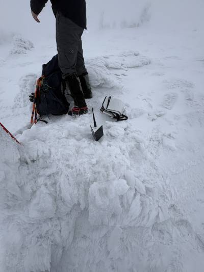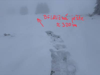 Chybělo pouhých cca 320m k vrcholu v navátém sněhu.